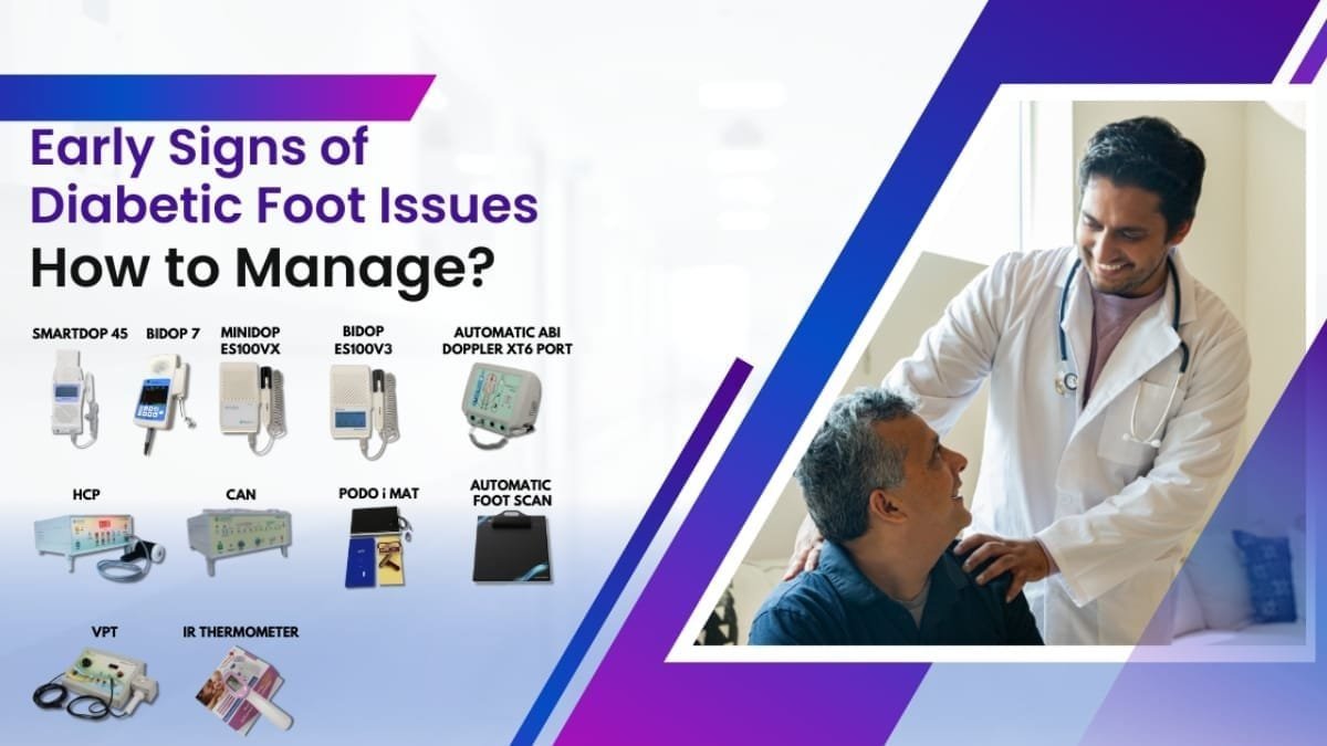 A healthy lifestyle, regular foot care, and medical advice can help. You can deeply moisturise and soften dry and cracked skin, reduce inflammation and soothe irritation, and combat bacterial growth and fungal infections by regularly using diabetic foot care products. Detecting and monitoring the blood flow velocity and sensory perception such as vibration, hot and cold in arms and legs is also crucial in vascular disease diagnosis. Kody Medical is one of Chennai’s leading hand-held vascular Doppler and Diabetic foot care diagnostic machine suppliers. The portable vascular Doppler, vibration, and hot and cold perception devices are non-invasive and cost-effective. Dopplers use high-frequency sound waves to measure blood flow through your veins and arteries. Our Vibration, Hot and cold perception devices work to observe the sensory threshold of patients suffering from diabetes.