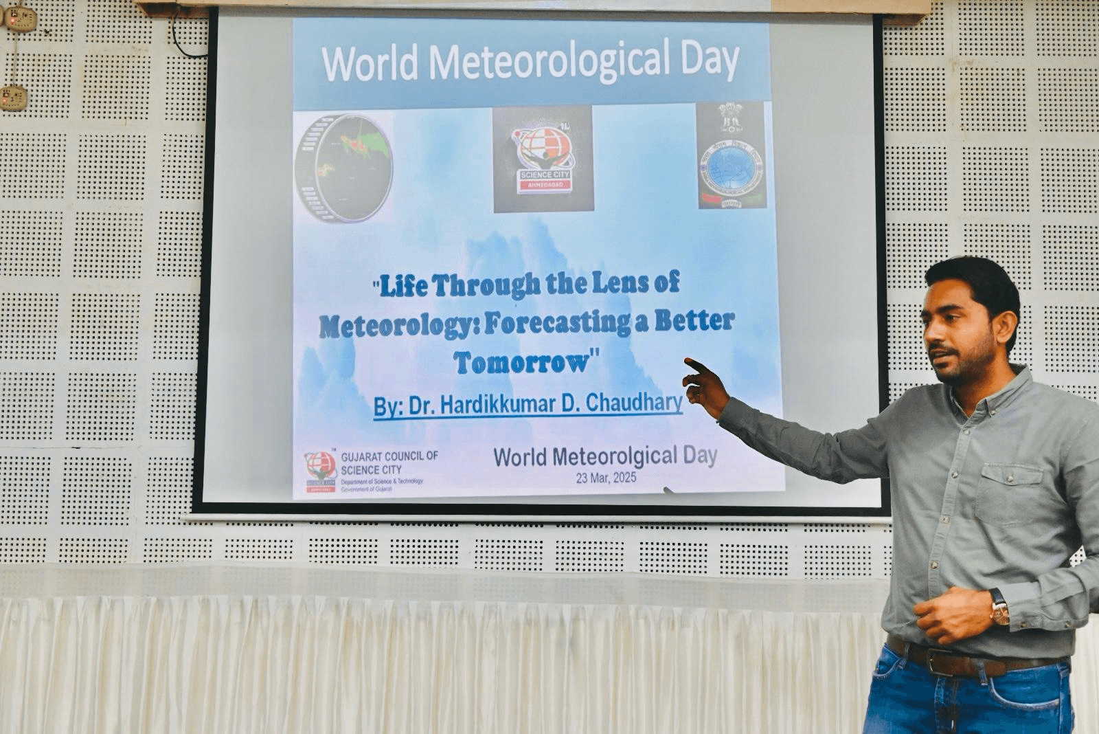 As part of the celebrations, Dr Hardikkumar Chaudhary delivered a lecture on “Life Through the Lens of Meteorology: Forecasting a Better Tomorrow.” He explained fundamental meteorological principles to students and highlighted the importance of weather forecasting.